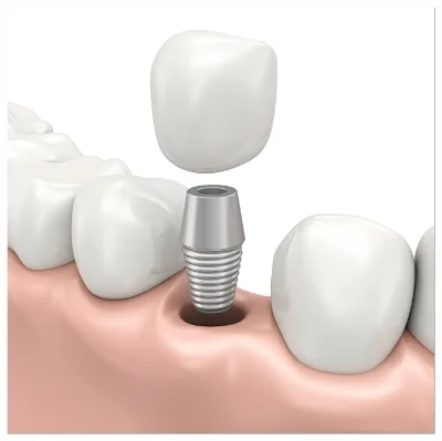 A dental laboratory will make an abutment (a post) that connects the replacement tooth to the implant.